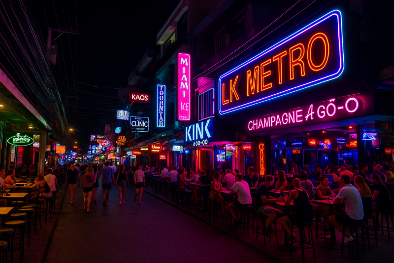 Pattaya’s most iconic nightlife strip, famous worldwide for its massive clubs, live-music stages, go-go bars, and neon promenade.