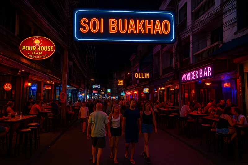 One of Pattaya’s most iconic bar streets, famous for fast-paced bars, neon lights, and fun atmosphere from afternoon until late.